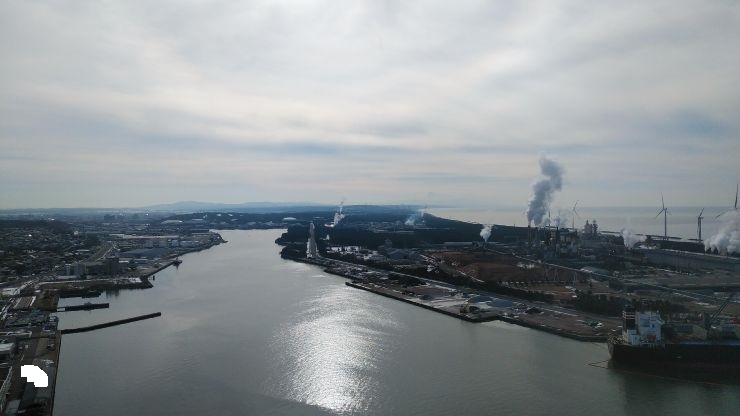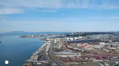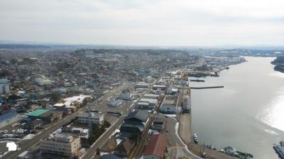 海の方を見れば、男鹿半島が見られる絶景。眼下には秋田臨海鉄道の線路が続く。そのほか秋田市内の町並みの広がりも見ることができた。