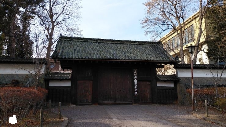 長野県上田市、県立上田高校の正門が歴史を感じる立派なものになっている。