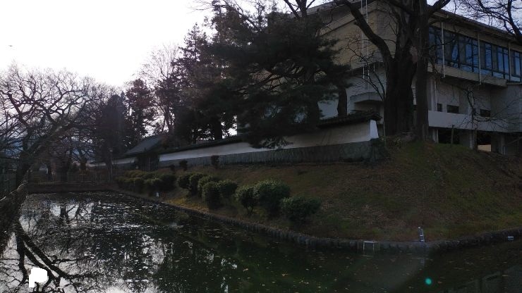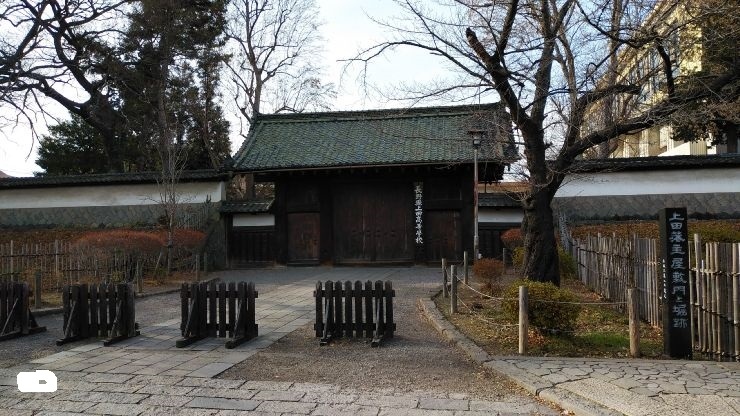 敷地内がもともと上田藩主の屋敷跡だったようで、史跡の中に高校が設置されているような感じ。