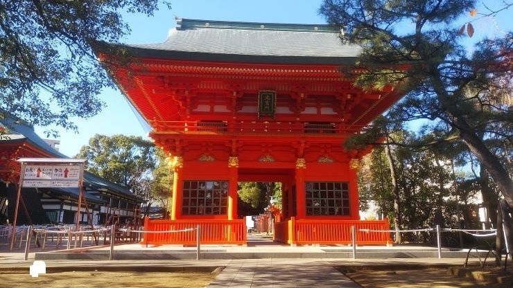 まず、入口の山門が赤の中に金色が使われていて立派な印象を持った。境内には複数の社殿があり、多くの神様を祀っていると感じた。初詣にはだいぶ先のの時期だったが、多くの参拝客がおりにぎわっていた。- 旅行時期