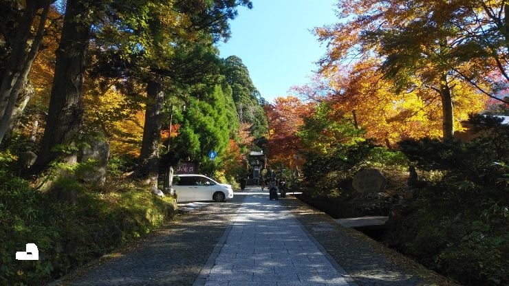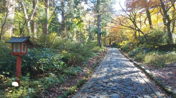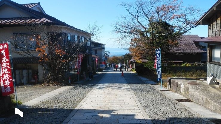 石畳が整備されたゆるやかな坂道で自動車も通行可。たまたまなのかわりと頻繁に自動車が通行していた印象。道幅も広くはないので後方からの自動車に気をつけて通行した。