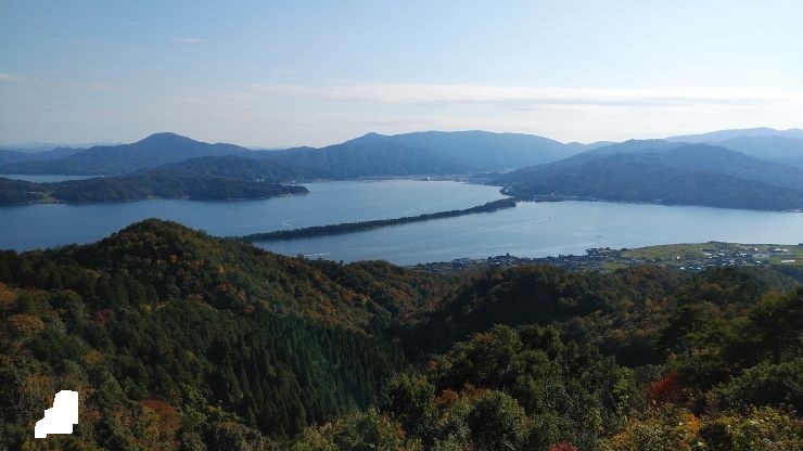 こちらの方が標高が高い分、より全景を見渡しやすいかも。ななめに見える砂州も傘松公園と同様。