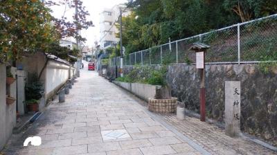 勝鬘院愛染堂と大江神社に隣接して続く坂で自動車は通行できないので歩行者にとっては安心できた。