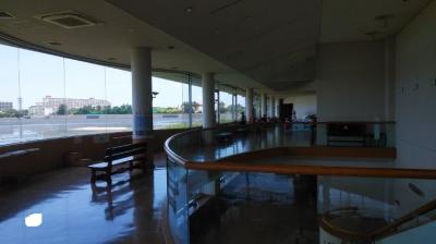 干潟に面して大きなガラス窓が設けられていて、風景を一望することができる。