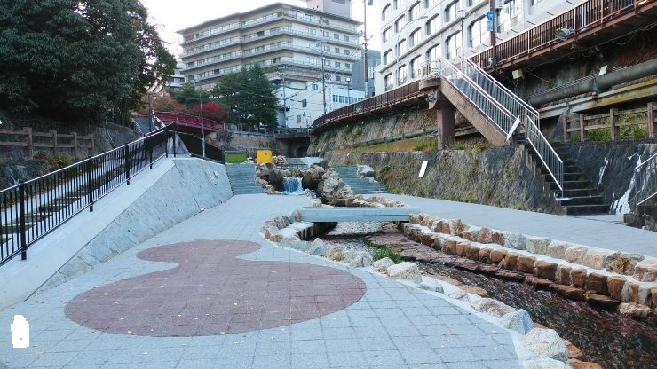 公園自体は小さいが温泉が湧きだす井戸が設けられている。ここから湧き出す温泉は単純二酸化炭素泉。温度が低いので湯気が出ることはないそう。