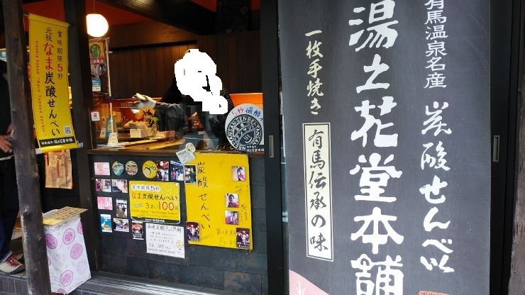 有馬温泉名物、炭酸せんべい。有馬温泉に湧き出る炭酸泉を利用したせんべいでお土産屋で販売している。
