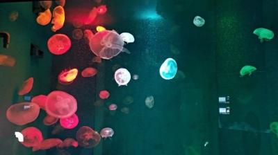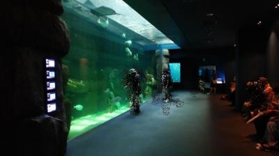 大きな水槽は迫力があり、たくさんの魚が動き回り海底にいるような気分だった。
