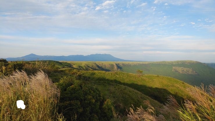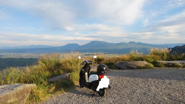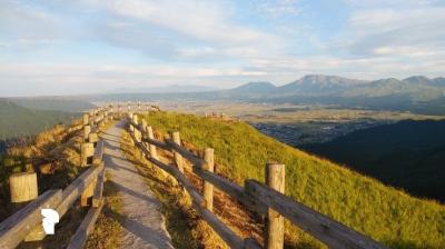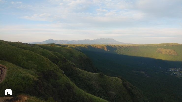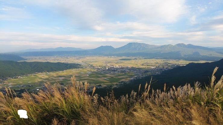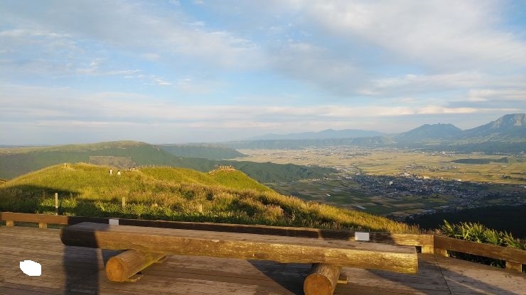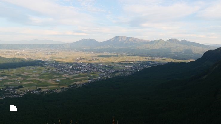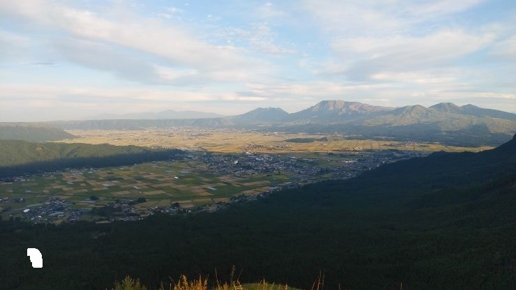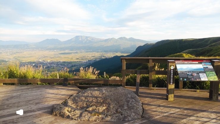 砂利の駐車場が設けられており、駐車場から麓のカルデラ地形を眺めることができる。田園風景とまとまった集落、周辺の山々の眺望がすばらしい。見ごたえのある眺望だった。- 旅行時期