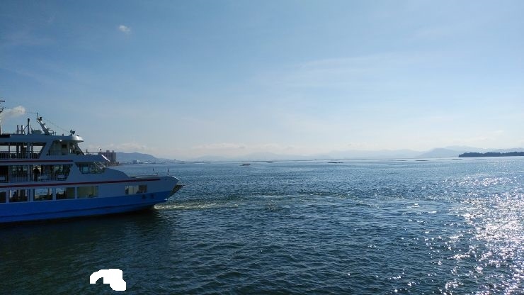 鉄道やバス利用だと回り込むようなアクセスになるが、航路を使えば海を渡って直行できる。ただし、ももちも博多ふ頭も鉄道駅までが遠いので、結局はバスを利用することになりそう。