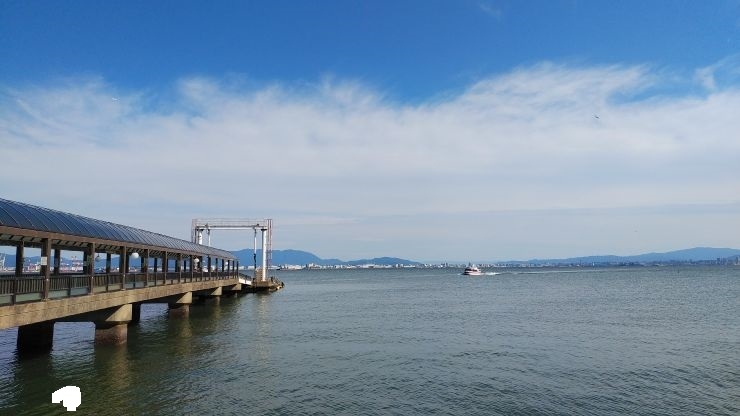 海の中道とももち、博多ふ頭を結ぶ航路。マリンワールドの近くに乗り場がある。