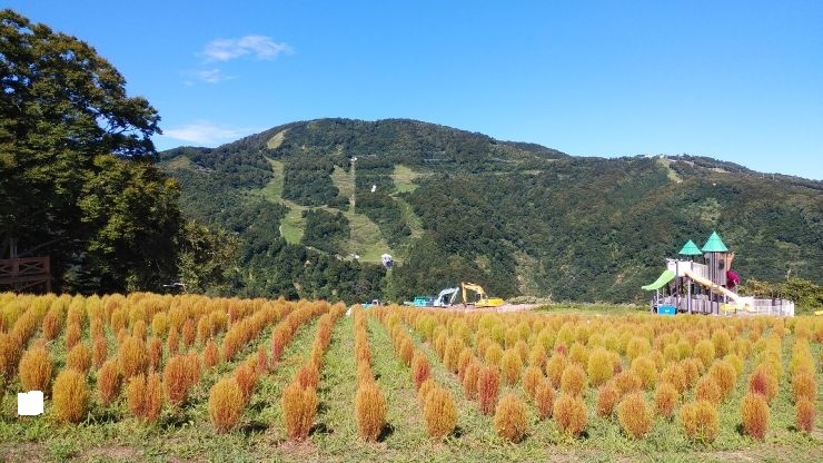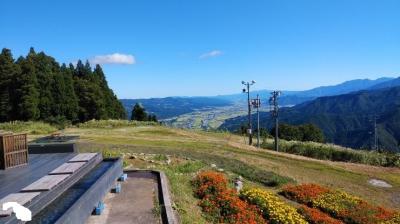 ロープウェイを上がるとすぐに、遠くの山々と湯沢の街並みが見渡せる展望デッキがあり、ふもとの田園風景はまずまずの絶景。アップダウンのある施設は無料のリフトを利用しながら、花畑や水場の風景を満喫することができた。- 旅行時期