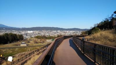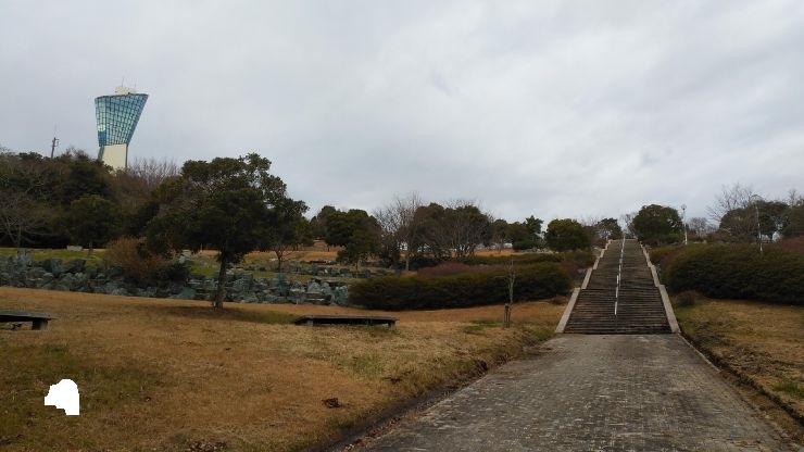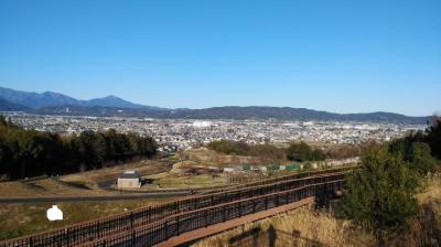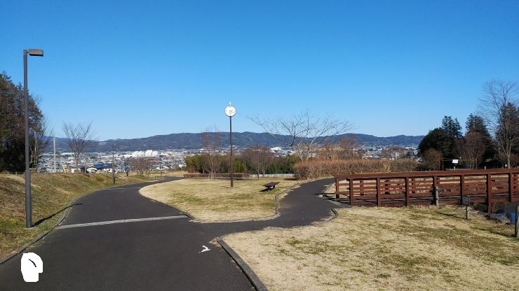 広い公園は眼下の街並みや周辺の山々の風景が一望でき眺めがよい。
