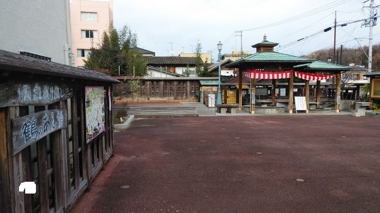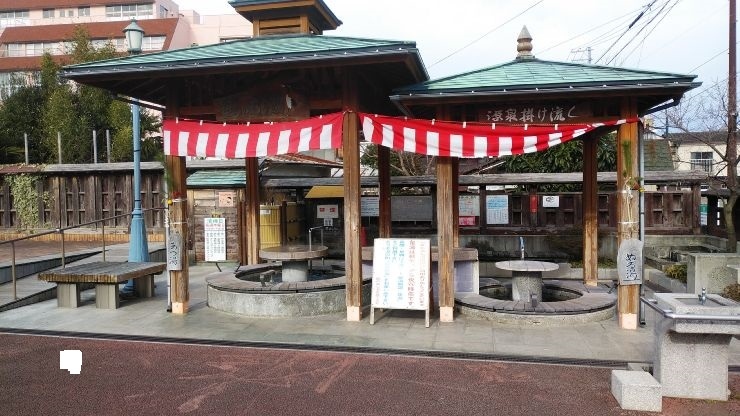道路に面した鳥居をくぐると、石畳の参道が味わい深い。階段を上がったところには温泉が湧き出ており、特徴的だった。- 旅行時期
