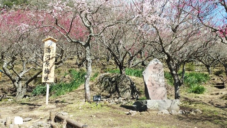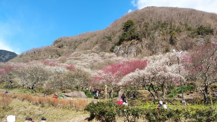 2月から3月にかけて麓の幕山公園では梅が見頃を迎えており、斜面に満開に咲く梅は見ごたえがあった。