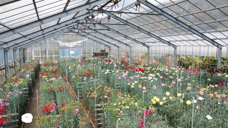 展示のビニールハウスの中には様々な品種のカーネーションが並んでおり、多様な色彩を楽しめる。中には市場にあまり出回らない珍しいものもあるようで、興味ある人には貴重な展示だと感じた。- 旅行時期