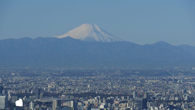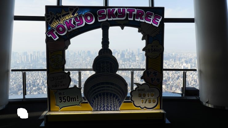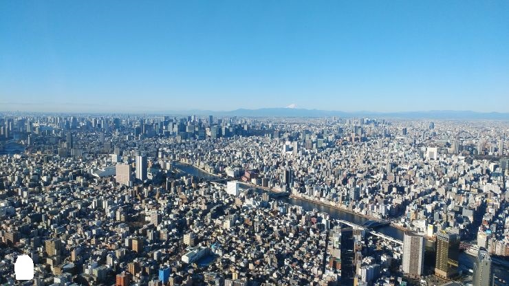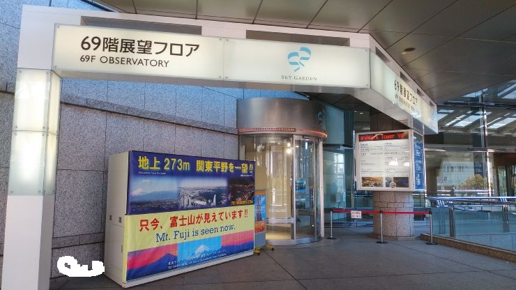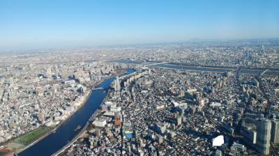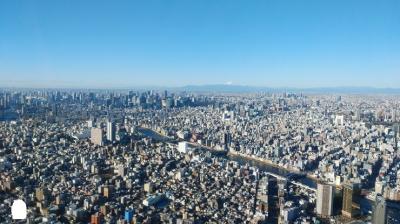 冬の空気が澄んだ日は富士山もくっきりと見えてよい。展望エリアは二層式で地上350メートルの展望デッキと別料金で地上450メートルの展望回廊がある。初めて来たときは展望回廊まで行くとよいかと思う。