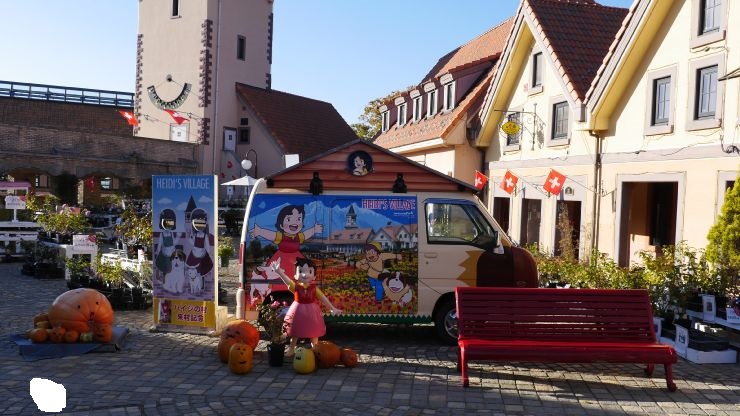 アルプスの少女ハイジの舞台をイメージしたセッティングで入場口付近はスイスをイメージした洋風の建築物がムードを高める。