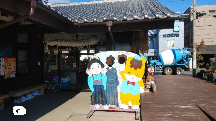 富岡氏のキャラクターお富ちゃんが入口にいるのが印象的。