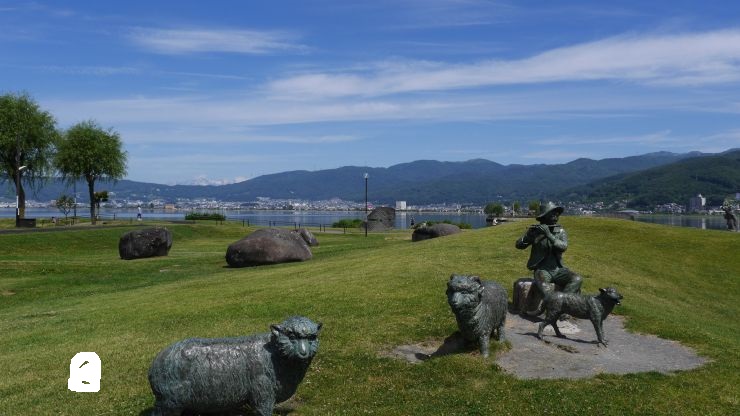 上諏訪駅から徒歩約10分、諏訪湖のほとりに設けられた公園。