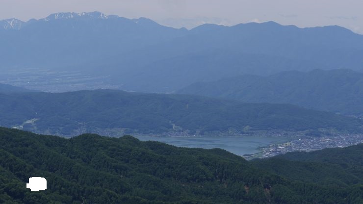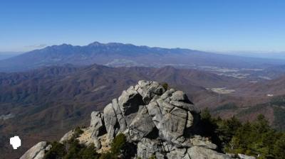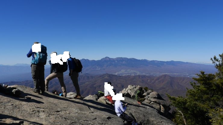 急な上りを克服した先の山頂の景色は絶景で、富士山や南アルプスの山々がくっきりと見られた。ただ、山頂スペースはあまり広くないので、平日ながら登山者でいっぱいで落ち着かなかった。