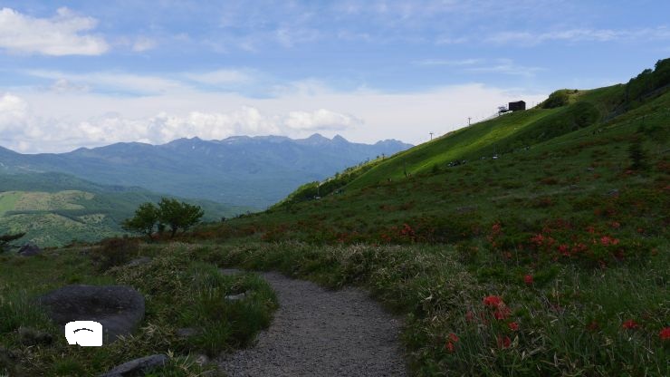 スタートは田代ロープウェイ。山頂からドラゴンドラ乗り場まで移動、さらに高速リフトで移動し、登山口へ。このあたり、標識が出ているので迷うことはなかった。