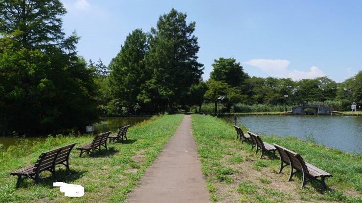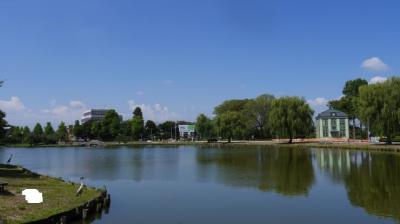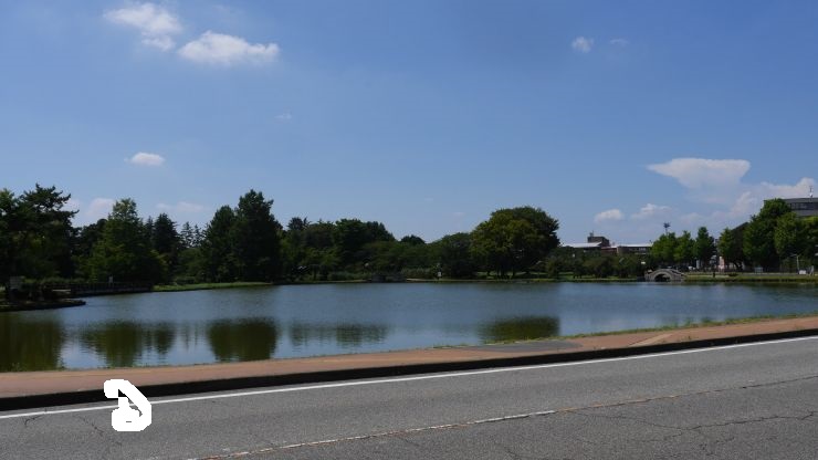 湖に沿って遊歩道が設けられ、芝生に配置された彫刻などが公園の風景を彩る。