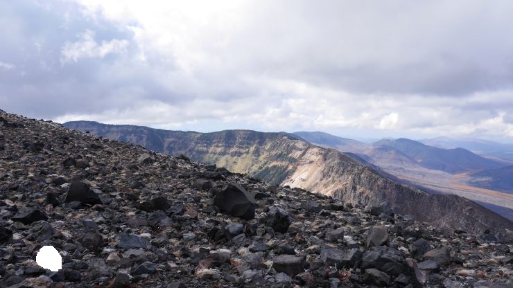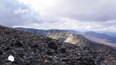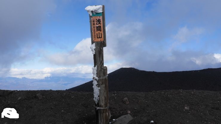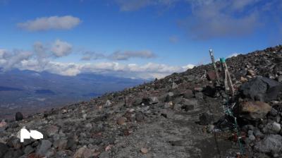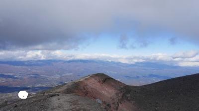 10月下旬の山頂はうっすらと雪があり、おそらく気温も氷点下だったと思われる。火山らしい雄大な景色を望め、頑張った苦労も報われたといったところ。とはいえ疲労がたまったあとの帰りの草すべりの登りはかなり厳しかった。