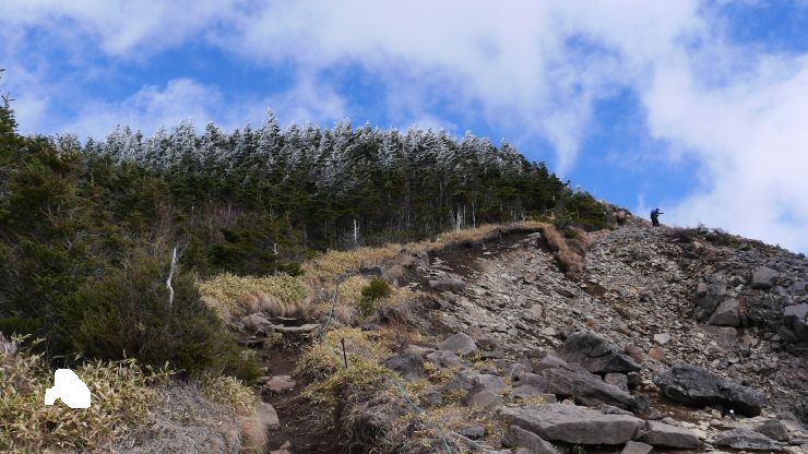 登山口から山頂までは約2.5キロで百名山の中では比較的短いが、標準時間は3時間程度と距離の割に長い。これはこの山の特徴である急登が続くため。