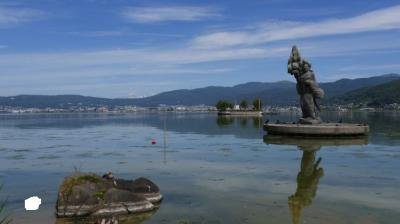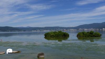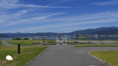 湖岸は公園として整備されていて、奥行きのある風景は開放感があって見ごたえがあった。霧ヶ峰登山の時も鷲ヶ峰付近から諏訪湖の様子を見ることができた。- 旅行時期