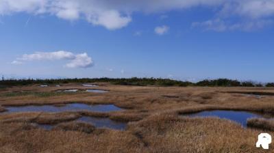 急な傾斜を登り切ると山上の湿原エリアに。この湿原風景がこの山の特徴ともいえ、非常に素晴らしかった。湿原は長野県側のコースにかけて広がっていて、この方向に下山できればより風景を楽しめそうだった。