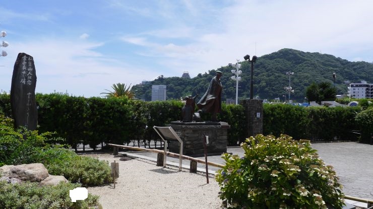 明治時代に尾崎紅葉が執筆した金色夜叉の熱海での有名なシーンが石碑になっている。