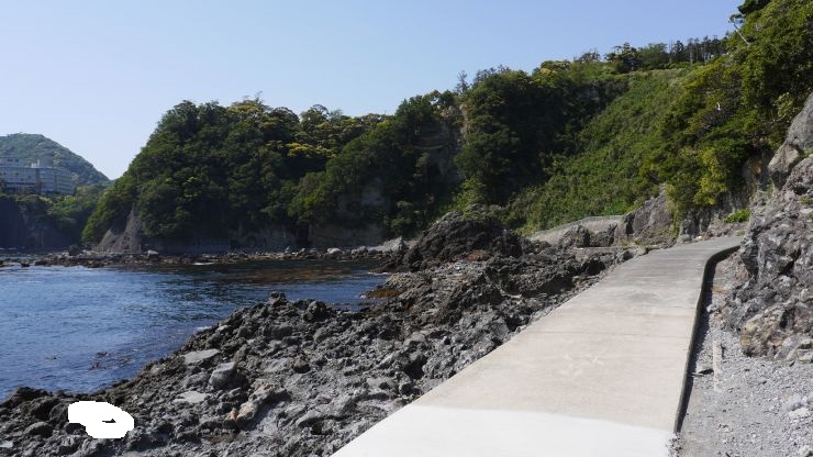 付近は海岸遊歩道となっており、このあたりからアタミロープウェイまで熱海の海岸風景を眺めながら散策を楽しんだ。- 旅行時期
