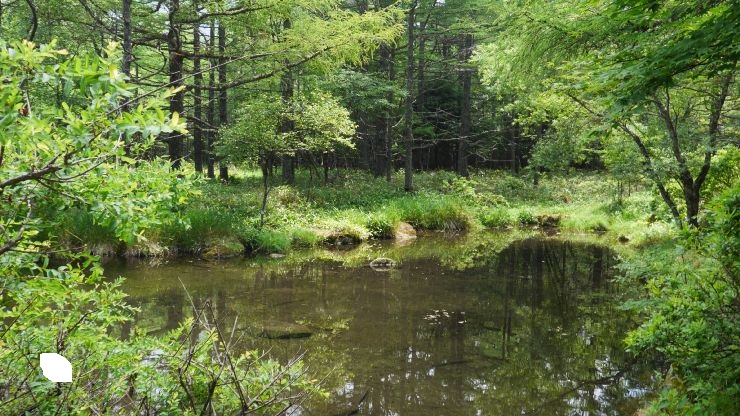 眼下には牧場や森林地帯、女神湖を眺めることができた。