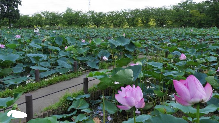 7月から8月にかけて蓮の花が一斉に開花の時期を迎える。