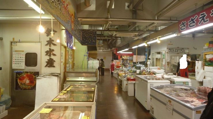 三崎港バス停からすぐ、魚市場の趣のあるショッピングゾーン。