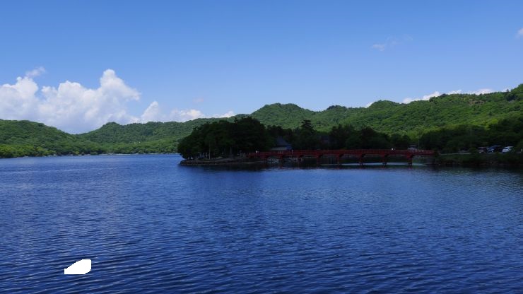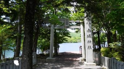 赤城山中腹にある神社。大沼のほとりにあって趣のある風景をつくる。赤が目を引く建物は参拝客でにぎわっていた。赤城山登山を目的としたが、バス降車後登山口までのルート上にあったので、大沼を眺めつつ神社の境内を経由して登山口に向かった。