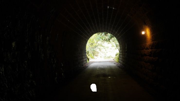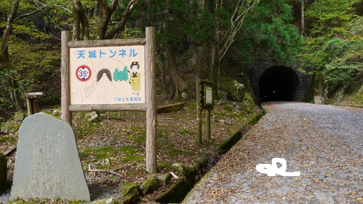 レトロな雰囲気を感じるトンネル。明治37年に完成したもので、これのおかげで天城峠の難所の移動を容易にした。ちょうど天城山から下山したところで天城峠の急な確度のコースに難所であったことを実感。トンネル内は独特のひんやりとした空気が漂っていた。