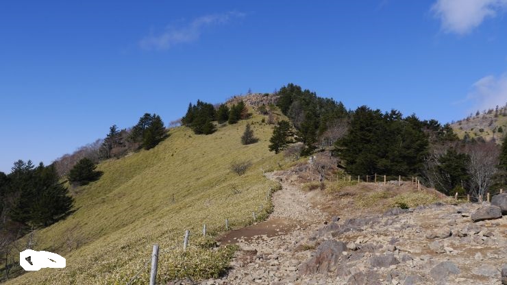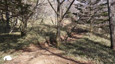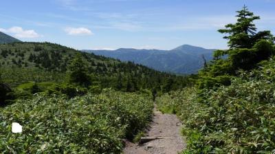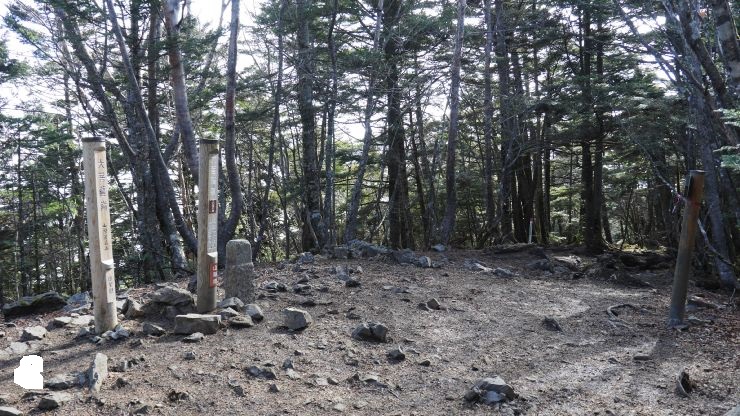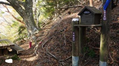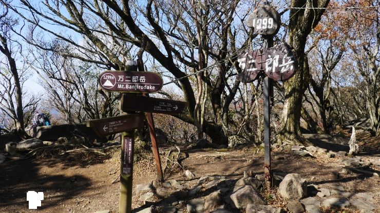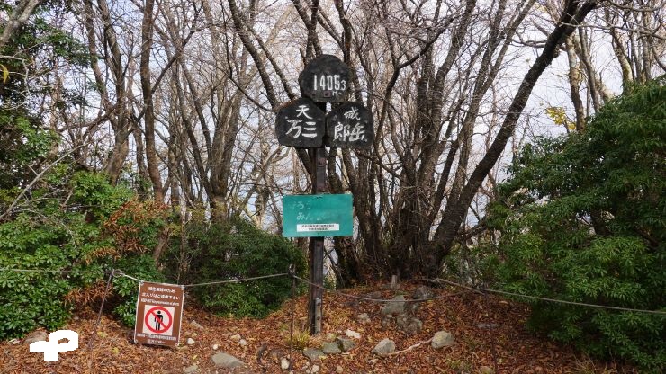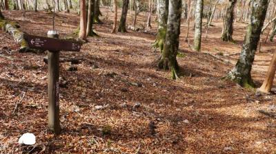 はじめのうちは緩やかな上りで楽勝登山かと思ったが、山頂付近は急な斜面あり。足元も岩場に変わった。総じて眺望は望めず、森の中が主体のコース。万三郎岳を過ぎると、途中登りもあるが概ね下りが中心。