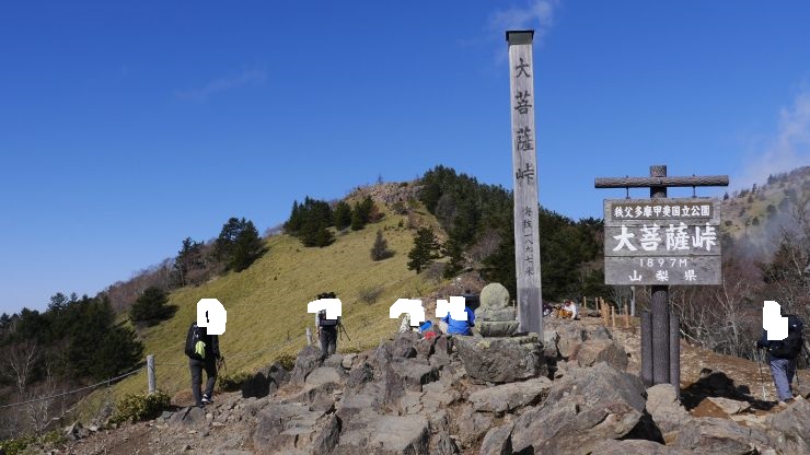 上日川峠から山頂までは複数のルートがあるが、今回は大菩薩峠から賽の河原を経て山頂へ、下山ルートは唐松尾根をたどった。