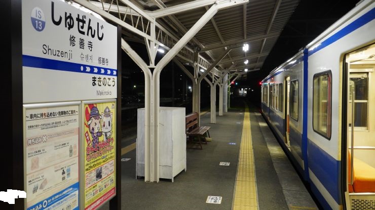 全線で約20キロメートルの距離であるが、駅間が短く各駅に停車するのでスピードは緩め。概ね15分間隔で運行しているので使い勝手の良さを感じた。夕方の利用で三島方面は空席が多かったが、修善寺方面は三島駅発車時点で立ち客もおり混雑していた。- 旅行時期
