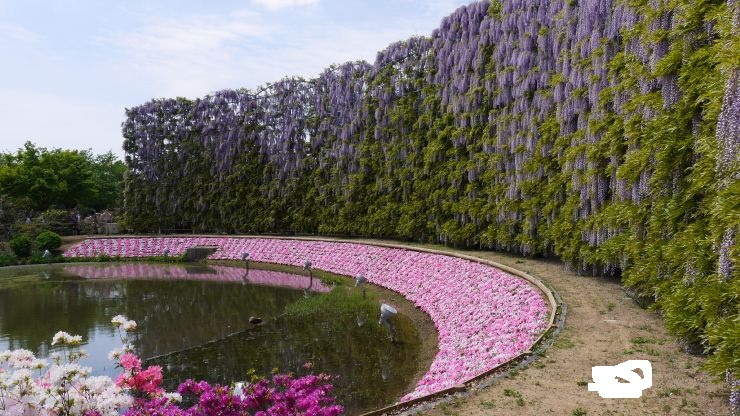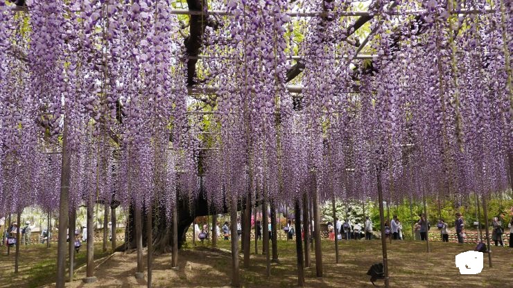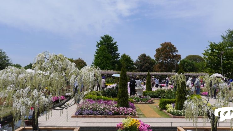 一年を通じて楽しめるが、初夏の藤まつり期間はたいへん混雑。