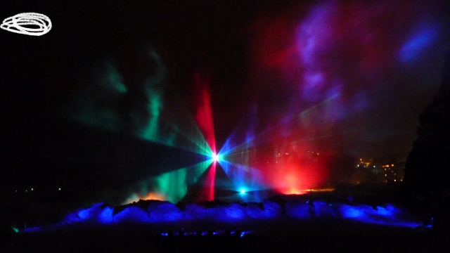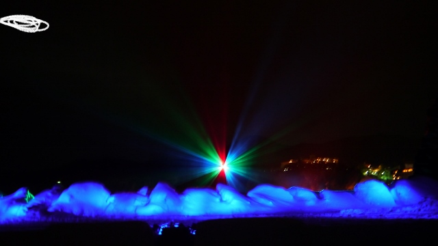 高台にあるプリンスホテル、第一ホテルから会場までは送迎バスがある。イベントは20時からで約20分間のオーロラショーが繰り広げられる。