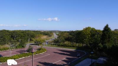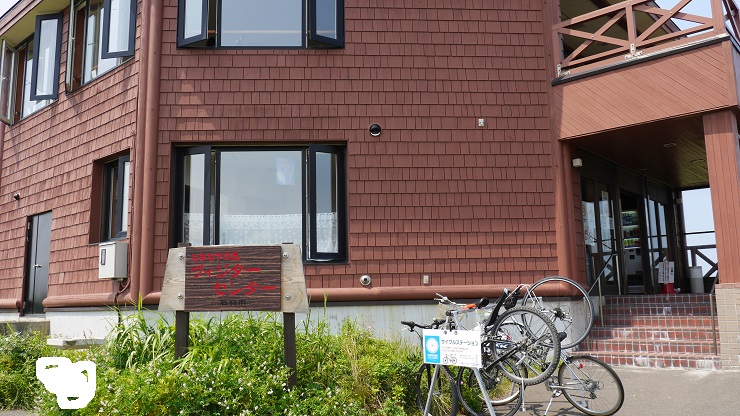 石狩市のはまなすの丘公園の入口付近に立つビジターセンター。2階のテラスからははまなすの丘公園や石狩湾を一望できる。1階では石狩市の特産品やハマナスのソフトクリームなどを購入できる。木道歩きの前後のブレイクタイムに利用したい。