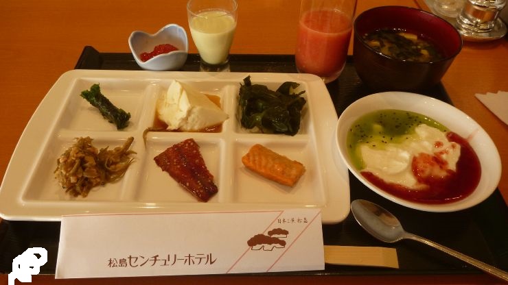 仙石線松島海岸駅から徒歩10分、日本三景松島にある温泉宿。海岸沿いにあり、近くには五大堂や瑞巌寺など松島を代表する観光スポットが近い。また、観光船乗り場も近くロケーションに優れている。今回は山側の部屋だったが海側客室からは松島湾の絶景が望めそう。温泉は循環ろ過で塩素臭がしたが、Ph8.6とアルカリ性で入浴した瞬間からツルツルの感触。露天風呂からはライトアップされた福浦橋が望めた。今回は朝食のみのプランだったので夕食は不明だが、バイキングスタイルのシンプルなもの。接客は丁寧だった印象。BS対応。