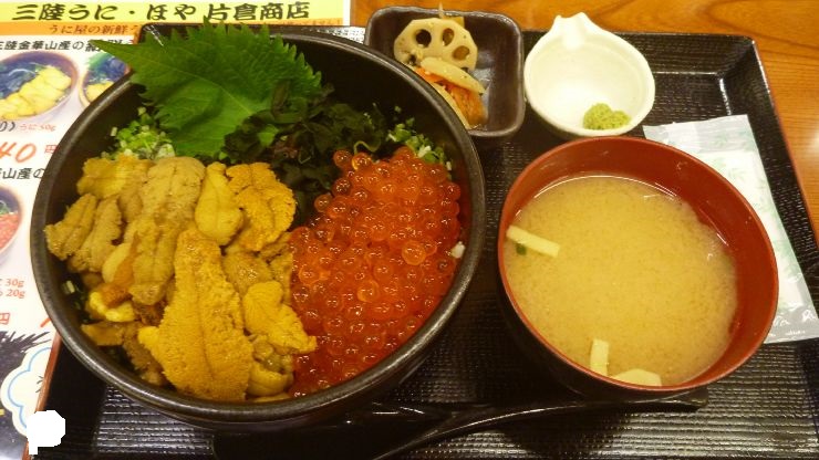 仙台市営地下鉄東西線卸町または六丁の目駅から徒歩15分くらい、杜の市場の中にあるお店。ミョウバンを使わないウニを味わうことができる。ウニは金華山周辺で水揚げされたもので、北海道で味わったことのある塩水うにとの比較を込めてトライ。ミョウバンを使用しないウニは臭みがなく、甘みがあって絶品。利尻礼文で味わうよりもリーズナブルに新鮮なウニをいただくことができた。