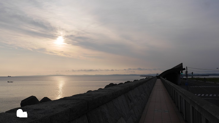 稚内駅から北へ約5分、北防波堤ドームに沿って設けられた遊歩道。北防波堤ドームの手前で歩道は終わる。海岸風景が楽しめ、フェリー待ちの時間調整に散策を楽しんだ。早朝の朝日がなかなかで一日の始まりを過ごすのには良かったと思う。