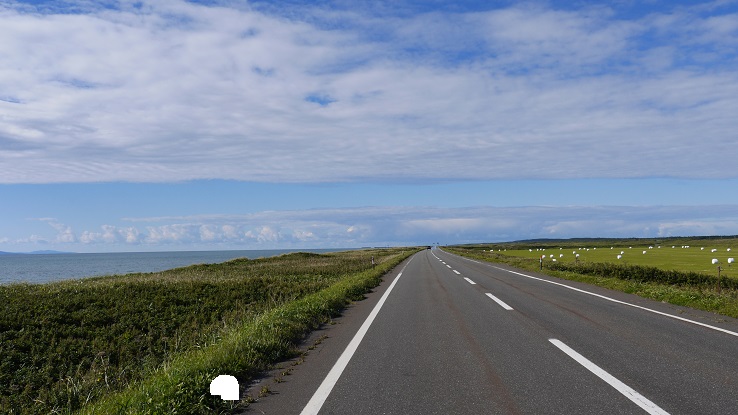 道北の日本海に沿って伸びるルート。きれいな海が間近に寄り添い、遠く利尻山を眺められる。一方、道路を挟んで人工物の無い原野が広がり、時に風車群が並ぶ。まっすぐと続く道は走っていて気持ちがいいがくれぐれもスピードの出しすぎとよそ見には注意したい。ところどころで駐車スペースがあるので広大な景色を見がてら休憩したい。雨の日や海霧発生時は注意が必要かも。