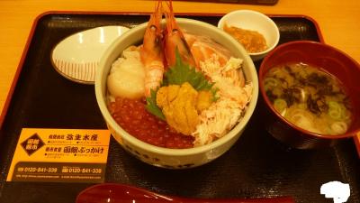 函館駅前どんぶり横丁に新しく入った店舗のようで初めての入店。いろいろなネタが楽しめる海鮮丼を注文。ボタンエビのボリュームやサーモンなど味はそこそこ。ウニはミョウバン漬のものだったと思う。鮮度感は普通な印象で大きな感動はないが観光客向けのお店かと思った。