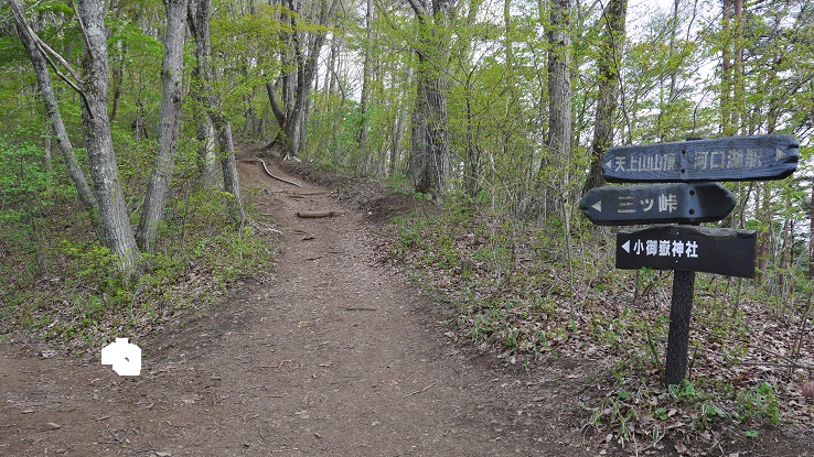 開運山、御巣鷹山、木無山3つを合わせて三つ峠と呼ぶ。いくつか登山道があるが今回は河口湖駅からバスで三つ峠登山口下車。バスはかなり混雑していた。ここから山頂までは道幅が広く、斜度の浅いよく整備された道を1時間程度。3つの山のうち開運山には標識が立ち、最も登山客でにぎわっていたが、残る2山は標識が無かったり眺望が得られないなどもあり、閑散としていた。富士山が良く見えることで有名らしいが、なぜかかすんだ一日、くっきりとではなくかろうじて眺望が得られる程度だった。下山ルートは約6km離れたカチカチ山ロープウェイ方面へ。こちらは登山道も狭く、延々と下り。逆だったらかなり辛そうだが、足元に注意して順調に下山できた。頂上付近以外は基本的に森の中の登山道。
