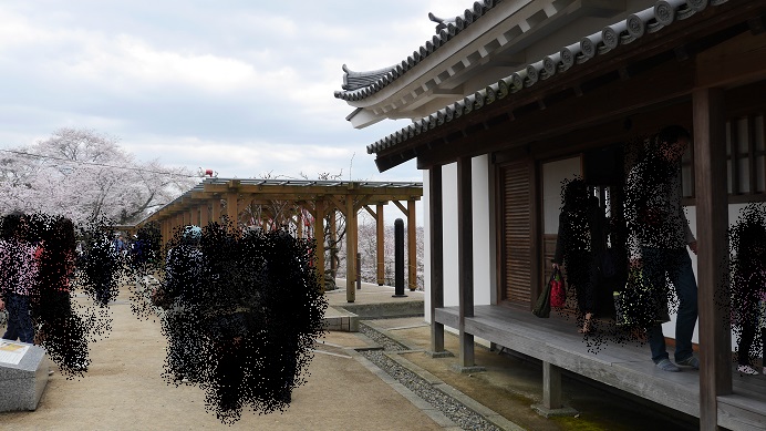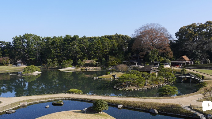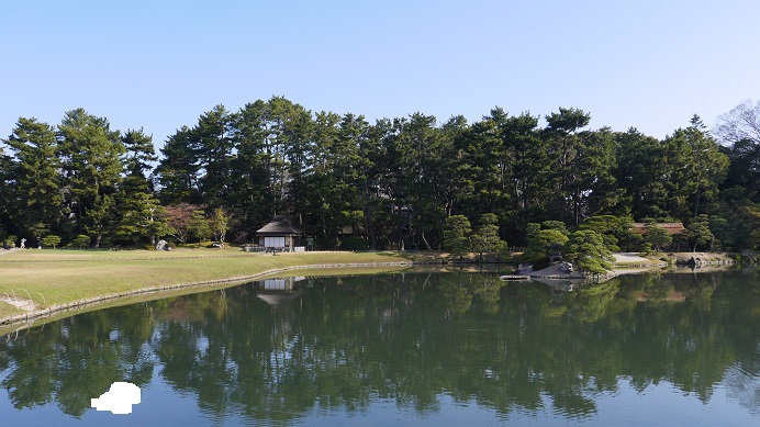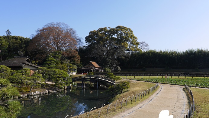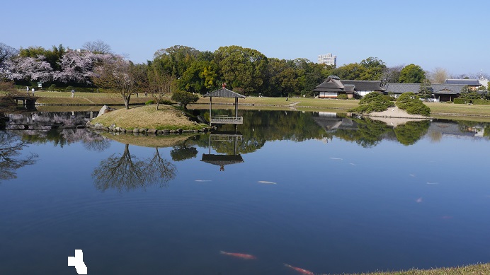 津山駅からは徒歩30分くらいと今回回ったスポットの中では最も遠い場所にあったが訪れる価値は感じた。無料開放された日本庭園で水辺によく手入れされた木々が趣のある風景をつくり出す。ここに植えられた桜がちょうど見ごろの時期を迎えていて、周辺の風景を一層引き立てていた。